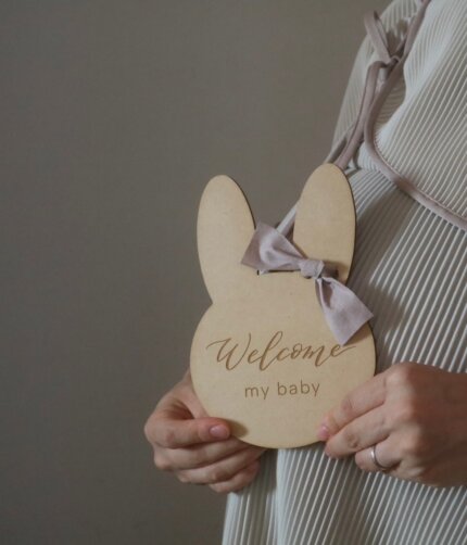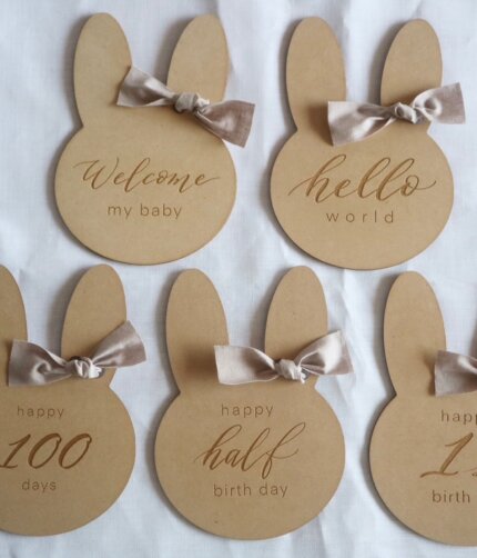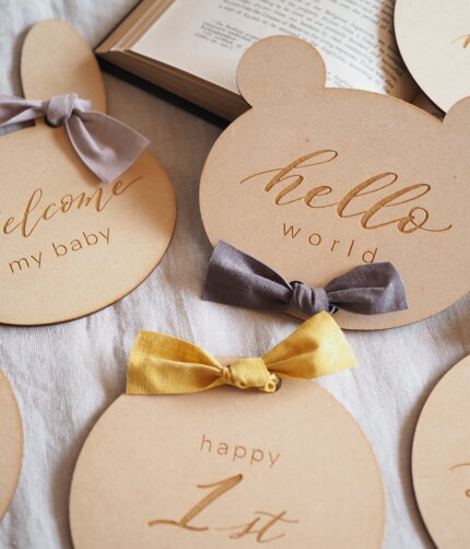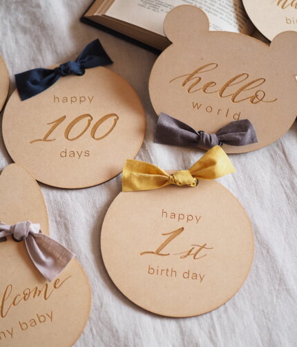 赤ちゃんの記念撮影に使える、ウッドプレート。