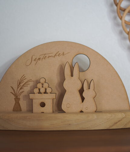 9月のテーマは「うさぎとお月見」 中秋の名月をイメージした満月と お月見団子とお月見を楽しんでいるうさぎさんを モチーフにしてみました。