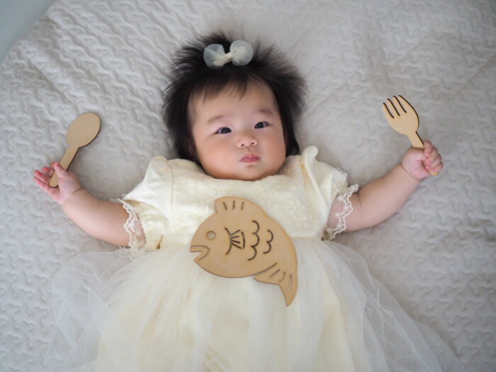 かわいい鯛とフォーク、スプーンがセットになっています。